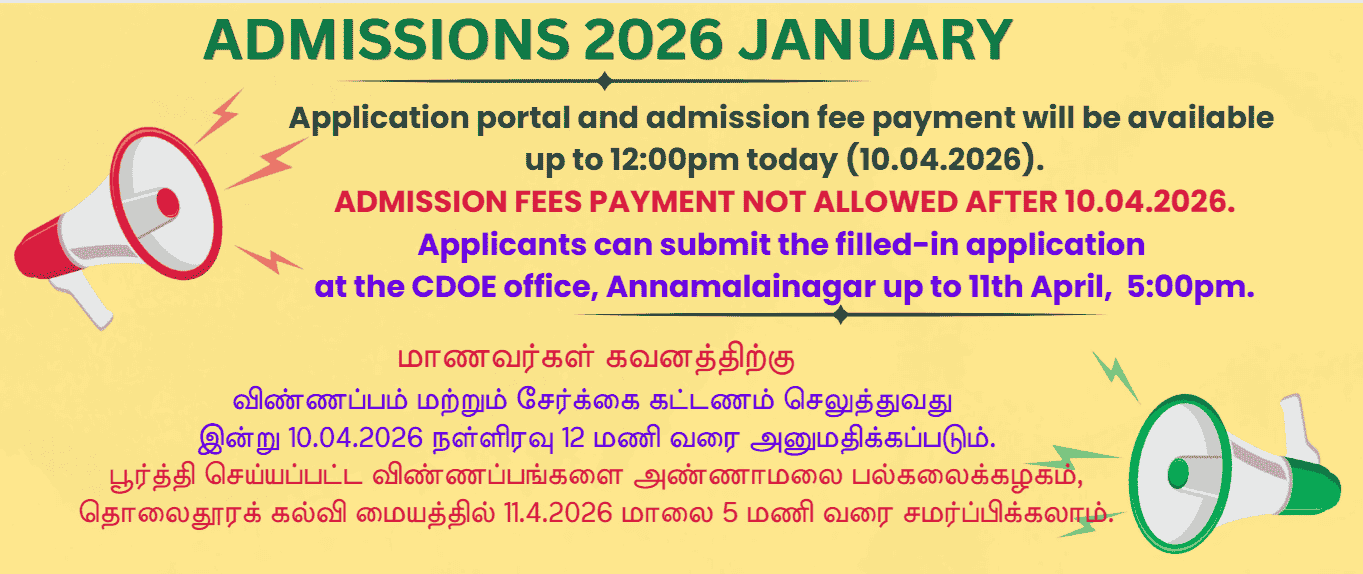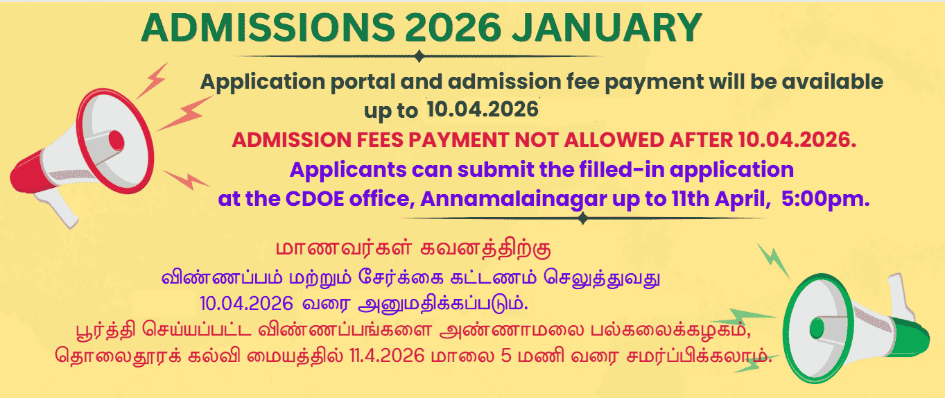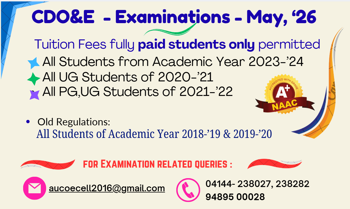 © 2015-2026, AUCDOE All Rights Reserved [email protected] 04144-238044 Design CDOE H Section Site Map